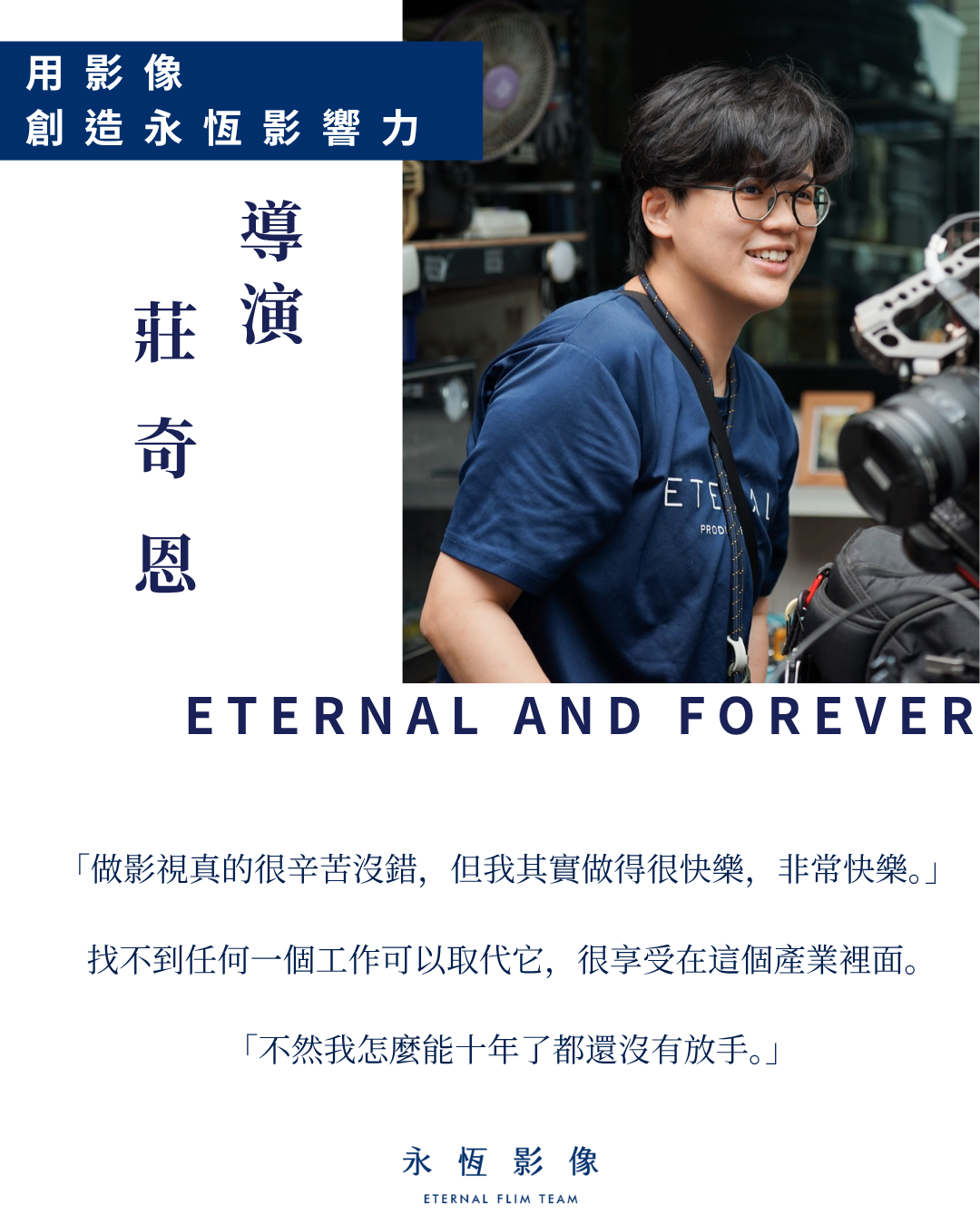 他的堅持、他的節奏、他的問心無愧,也正是永恆影像製作工作室的精神所在。